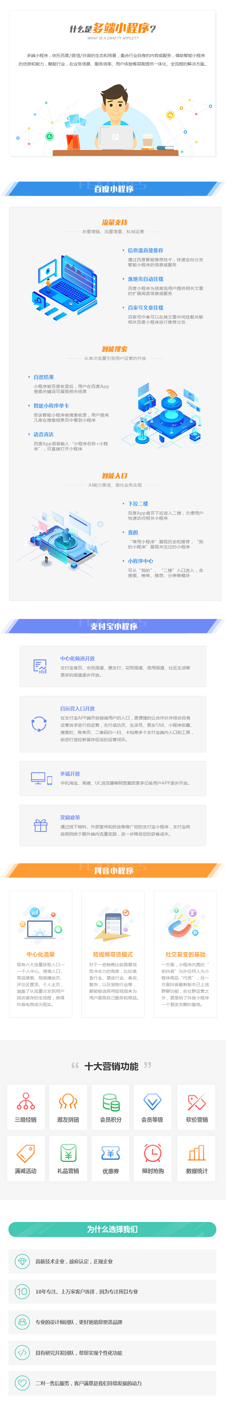 现在抖音、百度、微信等关键互联网领导者为了抓住小程序市场,已经布局了小程序业务。许多企业如果想在这些平台上获得顾客,他们必须在其平台上开发小程序。10个服务平台必须开发10个小程序,开发成本很高,发布维护也很麻烦。所以开发多端小程序,有很多好处!